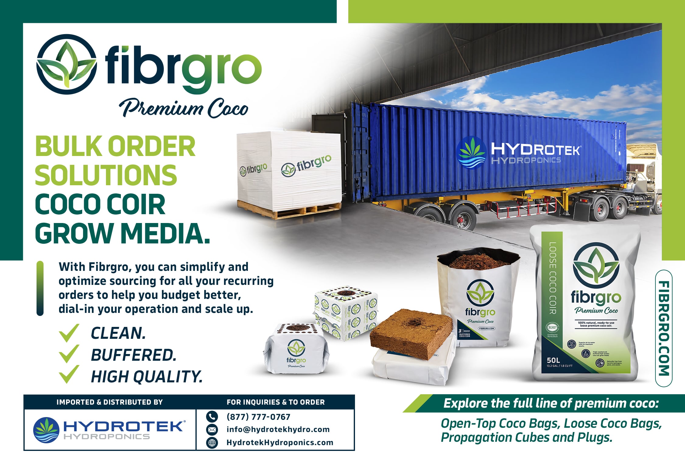 - Bulk options available for growing mediums, including pallet, 40ft container, and 53ft truckload quantities.